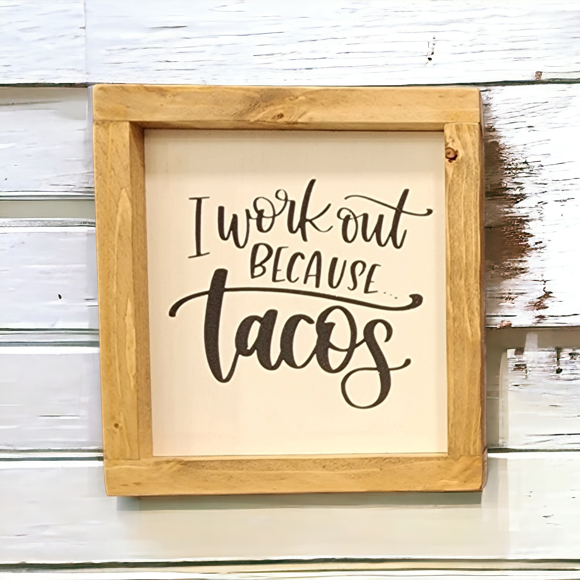 This handmade wood sign is perfect in any Taco lovers house. These signs are hand painted, not vinyl letters or mass produced through a printer. Three stain colors for the frames and either white background with black print (as pictured) or black background with white print.